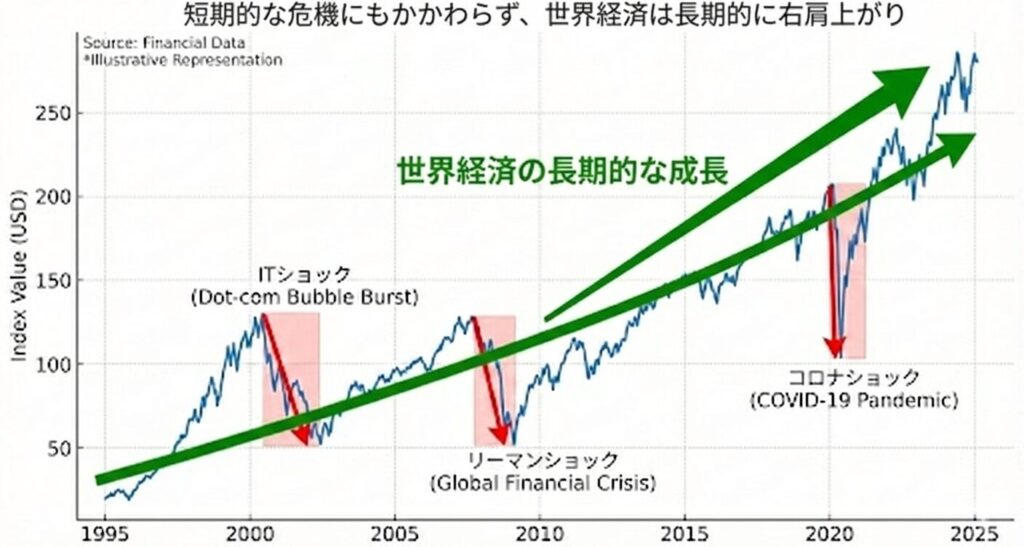 長期で見ると世界経済は右肩上がり。